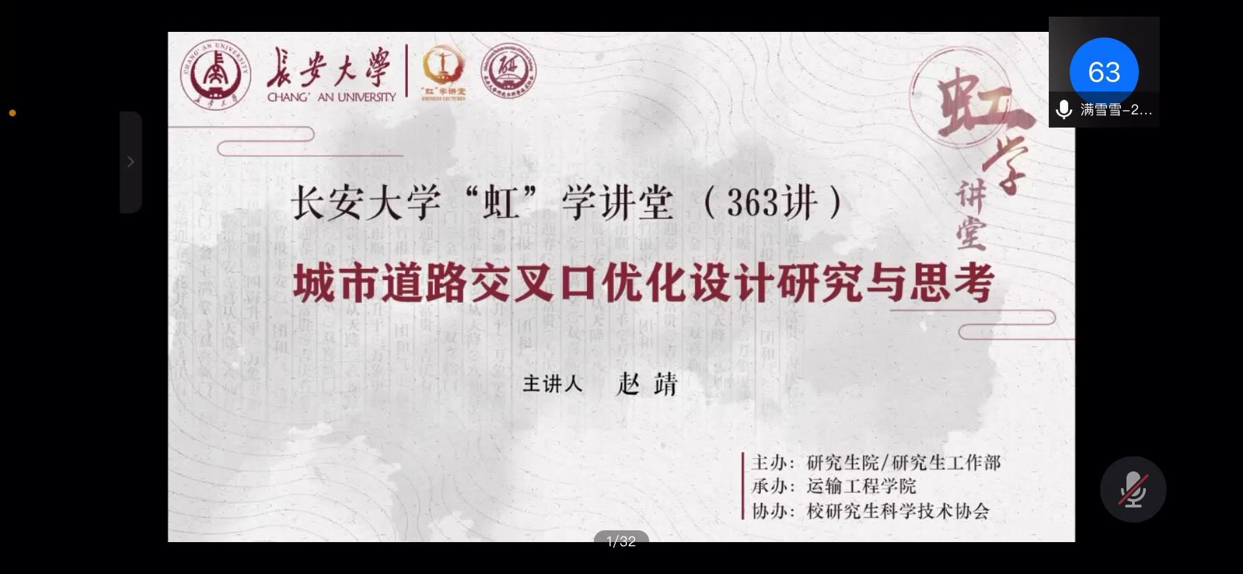 4月27日下午,由研究生院/研究生工作部主办、hg8868皇冠登录入口承办、院研究生科学技术协会协办的“虹”学讲堂第363讲线上讲座顺利举办。上海理工大学赵靖教授作了题为“城市道路交叉口优化设计研究与思考”的报告。我校相关学院共计200余名师生参加了此次讲座。