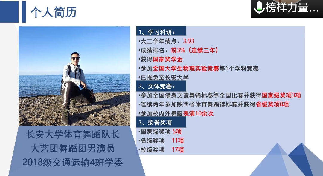 hg8868皇冠登录入口2018级交通工程7班宣讲人苏子硕以“从卓越走向更卓越”为题进行宣讲。他表示,优良的学风和强烈的班级凝聚力于班级而言至关重要,班级成员们锐意进取,志存高远,全班在整个本科期间零挂科,班级保研率高达89%,多数同学选择保研本校,愿为本校学科发展和“双一流”建设贡献力量。