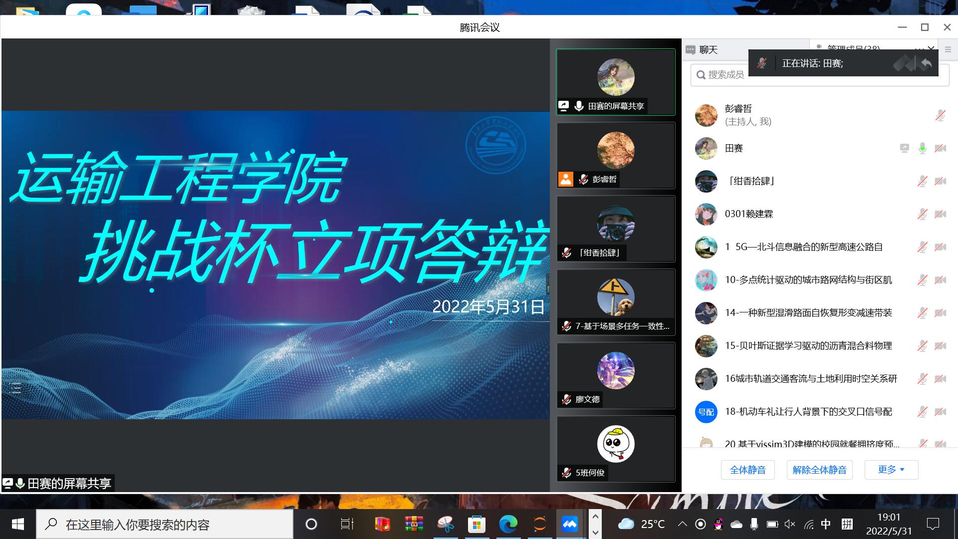 2022年5月31日晚,学院举办2022年挑战杯课赛立项线上答辩。hg8868皇冠登录入口交通工程系王秋玲老师、交通运输系张志俊老师、大数据管理与应用系房建武老师担任答辩会评委。院团委书记贺鑫,团委副书记、科协指导老师金振广以及答辩团队负责人和观摩团近80人参加答辩会。答辩会由hg8868皇冠登录入口科协双创部承办,田赛主持答辩。