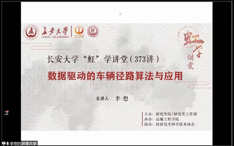 5月20日下午,由研究生院/研究生工作部主办、hg8868皇冠登录入口承办、院研究生科学技术协会协办的“虹”学讲堂第373讲(线上)讲座顺利举办。此次“虹”学讲堂,邀请了北京化工大学李想教授作题为“数据驱动的车辆径路算法与应用”的学术报告。我校相关学院共计300余名师生参加了此次讲座。