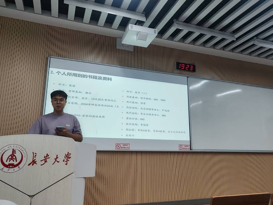 2024516日晚上19点,hg8868皇冠登录入口在北校区WX2205成功举办“研途漫漫,薪火相传”考研经验分享会。本次分享会旨在帮助低年级学生规划未来学习生涯,明确奋斗目标,积累备考经验,掌握备考方法,提升学习效率。学院辅导员李永春主持本次考研经验分享会。