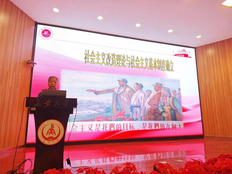 丁永刚教授以“社会主义改造理论与社会主义基本制度确立”为主题,围绕新民主主义到社会主义的转变、社会主义改造道路和历史经验、社会主义基本制度在中国的确立等方面,进行了深入浅出的讲解,生动阐述了从新民主主义到社会主义的转变历程,以及中国社会主义制度确立的划时代意义,并寄语在场师生深刻认识社会主义改造的必要性和必然性,增强对社会主义制度的坚定信心。