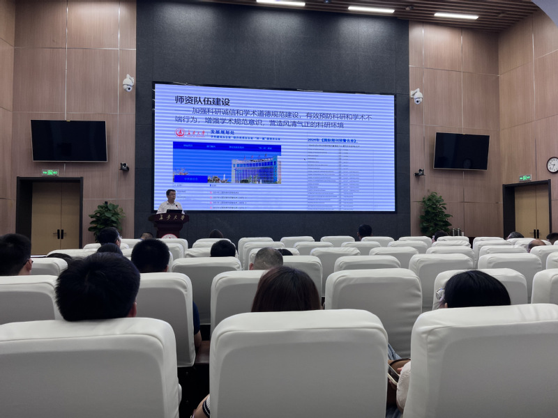 院长葛颖恩从人才培养、专业建设、师资队伍建设、科学研究、国际交流与合作等方面详细介绍了学院发展现状。他首先分析了各专业师生数量、生源质量、本科毕业生升学率和就业率等数据;其次,总结了我院2021年以来在专业建设、师资队伍建设、科研创新和国际化建设等方面取得的新成绩并做了初步分析,鼓励教职工积极参与专业建设、人才引育、项目申报、高水平成果凝练等;第三,他强调科研诚信和学术道德规范的重要性,并提到了相关注意事项。此外,他介绍并部署了学院暑期和下半年重点工作,包括本科教育教学审核评估和专业认证工作、国家级项目申报的提前规划与行动等。